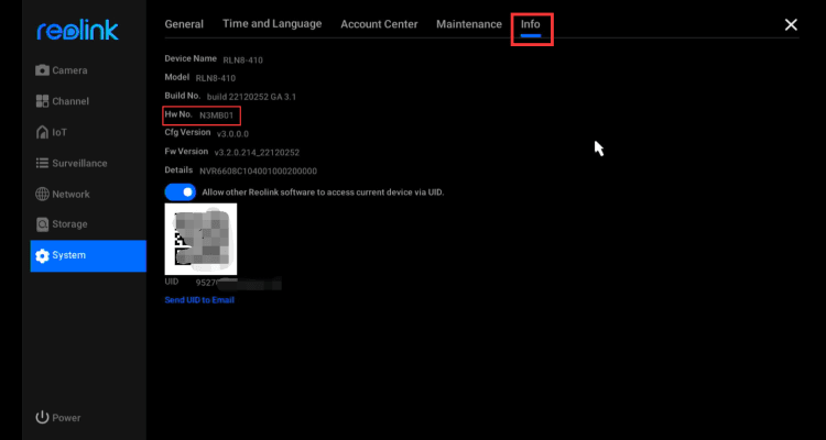 To know your NVR recorder hardware version, please go to the Menu of your NVR recorder > System > Info, then you will see the Hw No. of your NVR.